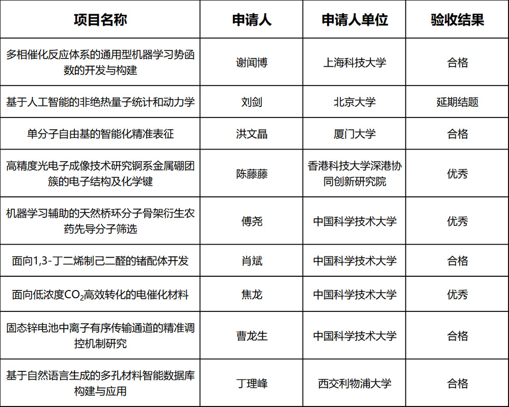 精准智能化学全国重点实验室2024年度自主部署项目结题验收结果公示