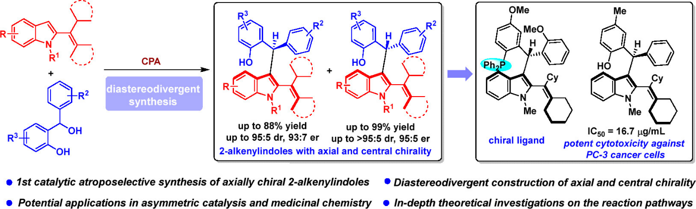英文原题:Catalytic Asymmetric Diastereodivergent Synthesis of 2-Alkenylindoles Bearing both Axial and Central Chirality