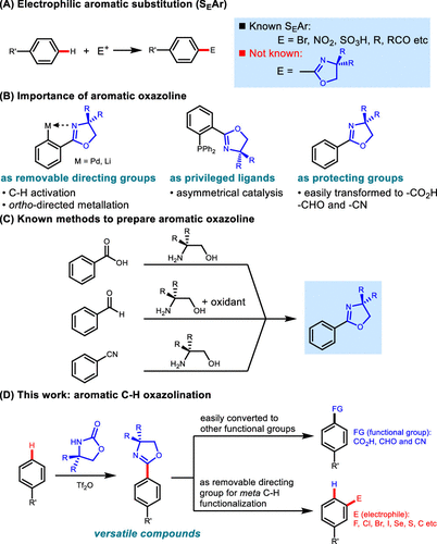 图3. 基于亲电芳香噁唑啉化作为关键步骤的多样导向性合成