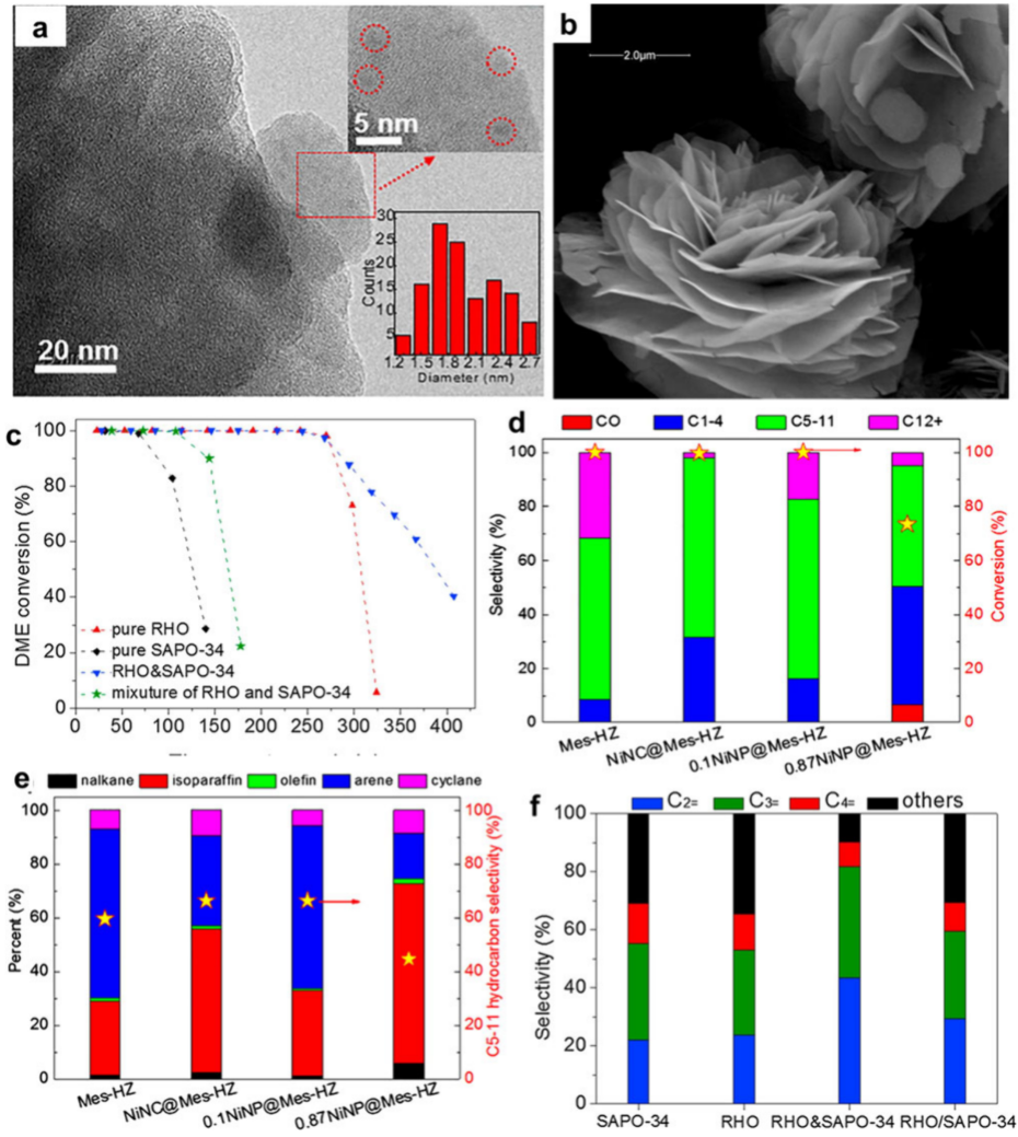 图二、NiNC@Mes-HZ催化剂的Ni纳米簇粒径分布及DTO催化反应结果