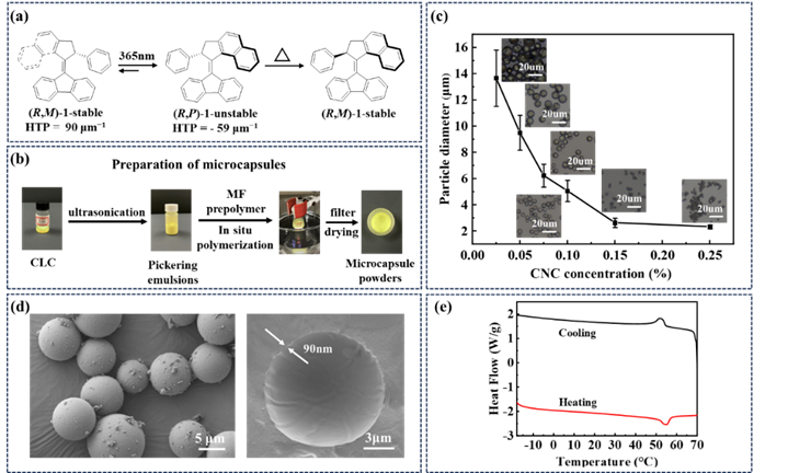图2. 含分子马达1的CLC微胶囊的制备、形态及相应表征