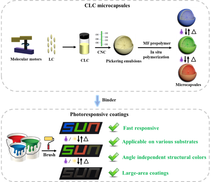 图1. 光驱动分子马达的CLC 微胶囊变色涂料的制备与性能