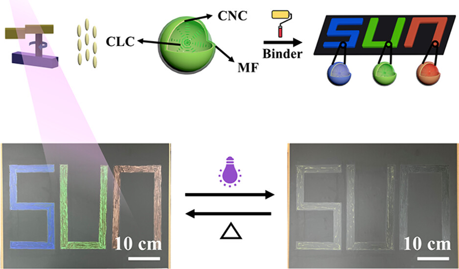 近日,华南师范大学陈家文教授在Precision Chemistry上发表了基于光驱动分子马达和胆甾相液晶微胶囊的光响应涂料的文章。该文提出了一种简单的方法,将光响应 CLC 混合物封装到一个刚性外壳中形成微胶囊。CLC 微胶囊与可固化粘合剂混合能够刷涂在各种柔性、刚性基材表面制成具有优异光响应性能的变色涂料。