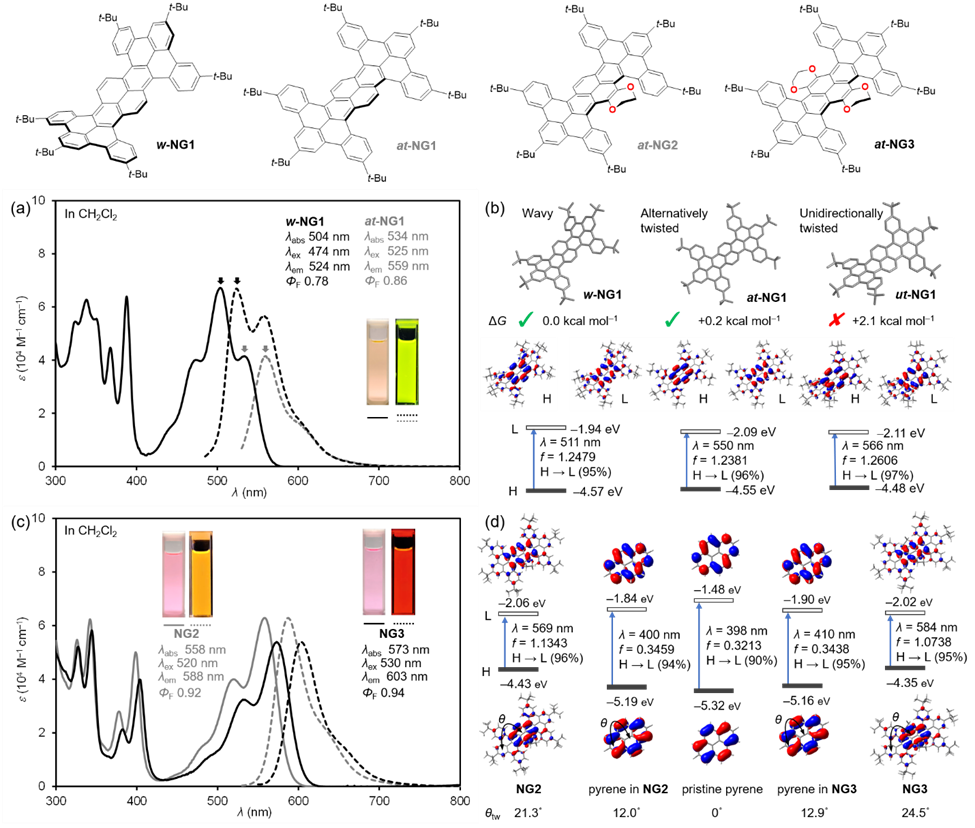 图3. 交替扭曲纳米石墨烯的光物理特性