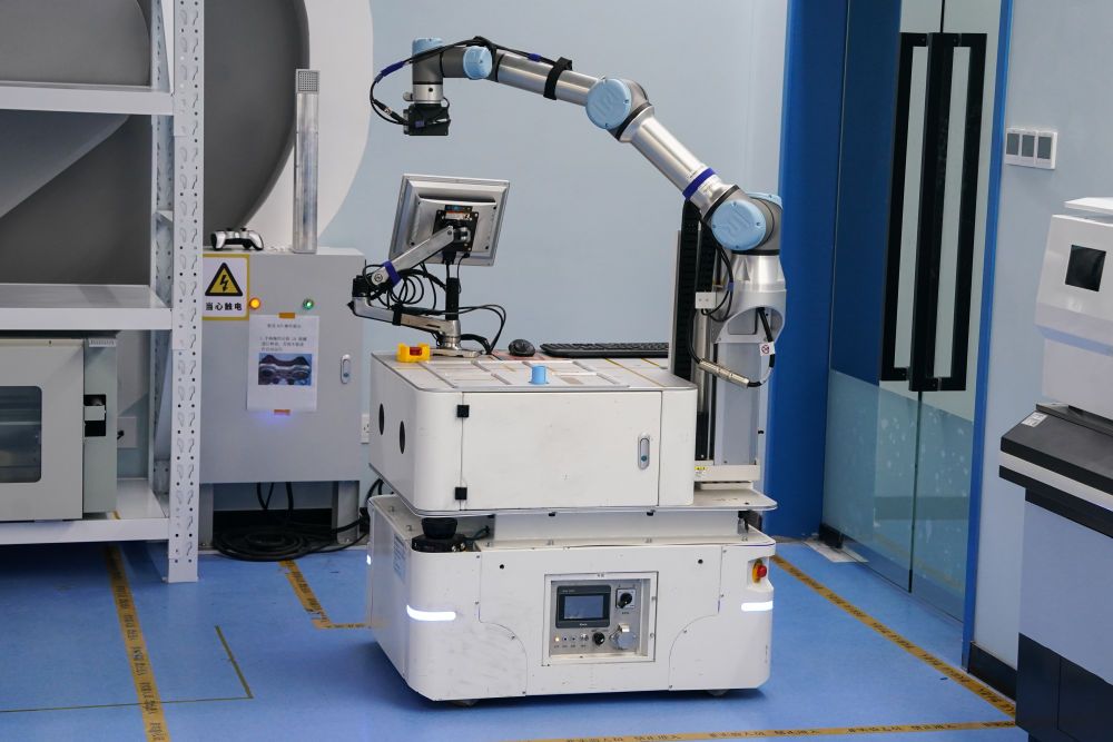 这是2025年11月24日在中国科学技术大学精准智能化学全国重点实验室拍摄的“机器化学家”小临。