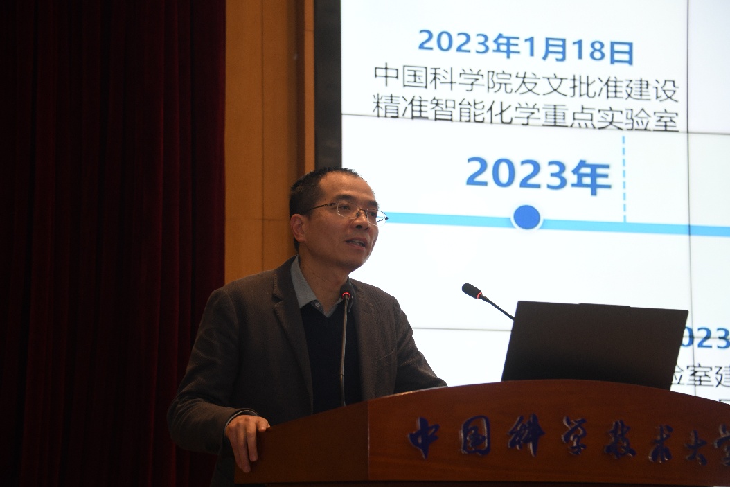 2026年1月23日下午,精准智能化学全国重点实验室召开2026年度第1次全室大会。实验室教授委员会主任杨金龙院士、学术委员会副主任谢毅院士、化学与材料科学学院执行院长刘世勇教授、全体固定研究人员、特任副研究员、“菁致”青年学者获奖人员及管理支撑人员等参加会议。会议由实验室副主任钟文婉教授主持。