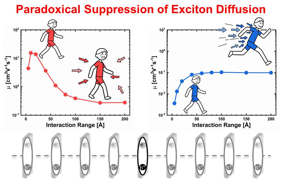 英文原题:Paradoxical Suppression of Exciton Diffusion by Long-Range Interactions: A Large-Scale Nonadiabatic Dynamics Study
